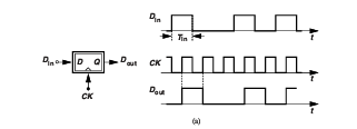a) 이상적인 경우 Din이라는 랜덤 이진 데이터가 있고, CK클럭이 FF에 샘플링