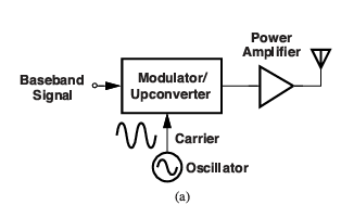 Carrier 는 오실레이터에서 생성되고, 증폭기(PA)를 거쳐 안테나로 전송