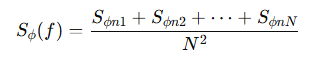정규화된 phase 노이즈는 1/ N1(ϕn1+ϕn2+⋯+ϕnN) 와 같다.
