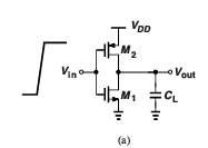 이런 cmos inverter 구조에서 입력이 0->VDD 라면 M1이 켜지면서 CL을 VDD 에서 0으로 방전시키게 된다.