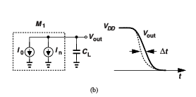 M1을 잡음전류 In을 포함하는 모델로 표현하면 전류가 CL을 통해 흐르고 특정 지연시간 JITTER를 유발한다.