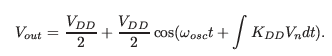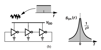 공급 전압 VDD가 노이즈 Vn(t)를 가진다면: 진동 주파수가 변화: ωosc(t)=ω0+KDDVn(t)