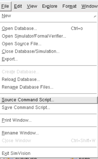 새로운 시뮬레이션 창에서 File → Source Command Script 저장된 svcf 파일 열기